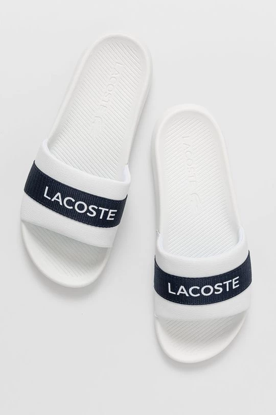 Παντόφλες από τη συλλογή Lacoste. Μοντέλο από συνδυασμό οικολογικού δέρματος και υφασμένου υφάσματος.