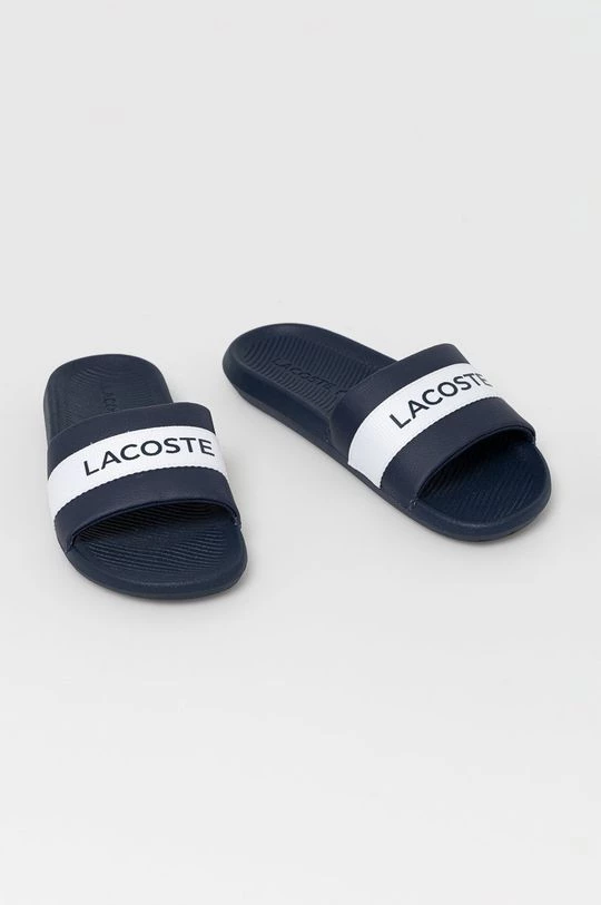 Παντόφλες από τη συλλογή Lacoste. Μοντέλο από συνδυασμό οικολογικού δέρματος και υφασμένου υφάσματος.